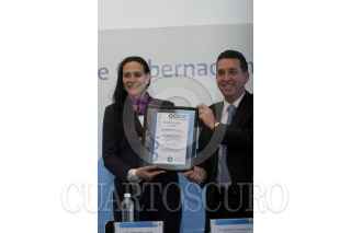 MÉXICO, D.F., 17ENERO2012.- Laura Gurza Jaidar, Coordinadora General de Protección Civil, recibió el reconocimiento de OCI World Wide Organismo de Certificación Internacional por parte de Francisco Álvarez Aja, Director General de OCI, esto en las instalaciones de la Secretaria de Gobernación.