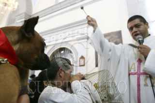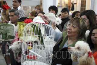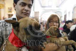 PUEBLA, PUEBLA, 17ENERO2012.- Fieles llevaron sus mascotas; perros, pericos y gatos a recibir la tradicional bendición durante la celebración de la misa en el día de San Antonio Abad, santo patrono de los animales. FOTO: HILDA RIOS/CUARTOSCURO.COM