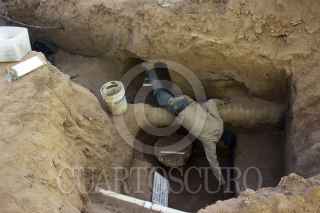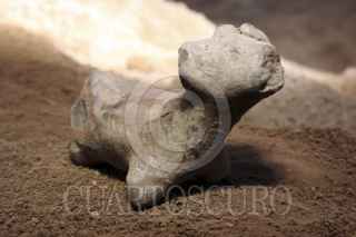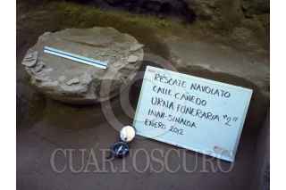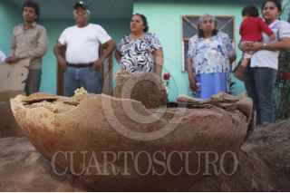 NAVOLATO, SINALOA, 18ENERO2012.- Mientras se realizaban trabajos de drenaje en una calle de Navolato se descubrieron dos urnas funerarias que datan de los años 500 y 1200 después de cristo; María de los Ángeles Heredia Zavala, directora del Centro Sinaloa del Instituto Nacional de Antropología e Historia, dijo que las ollas pertenecen a la cultura Aztatlán, que se desarrolló entre el norte de Sinaloa y el norte de Nayarit. Se dice que esta cultura tenia la costumbre de enterrar a los difuntos en estas ollas debajo de las casas, también se encontraron huesos y una figura arqueológica parecida a un perro el cual se considerara un guía para que los muertos cruzaran el río y pudieran llegar a Mictlán, lugar de los muertos; las piezas arqueológicas serán llevadas al INAH Sinaloa para ser estudiadas y obtener mas información. FOTO: RASHIDE FRIAS/CUARTOSCURO.COM
