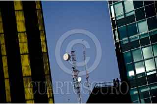 MÉXICO, D.F., 18ENERO2012.- Unas personas observan la ciudad desde la terraza de un edifico en avenida Paseo de la Reforma, detrás de ellos unas antenas de telecomunicaciones. FOTO: MISAEL VALTIERRA/CUARTOSCURO.COM