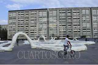MÉXICO, D.F., 18ENERO2012.- El escultor mexicano Rivelino intervinó 14 espacios y recintos culturales de valor histórico y artístico, del primer cuadro de la ciudad, con intalaciones bajo el nombre de "Raíces", en alusión a la historia de este país y a la identidad de los mexicanos, FOTO: GABINO ACEVEDO/CUARTOSCURO.COM