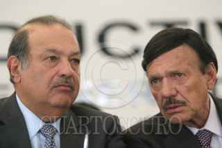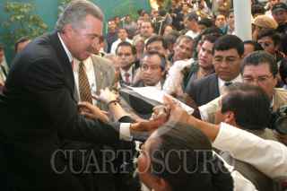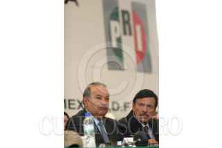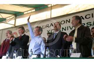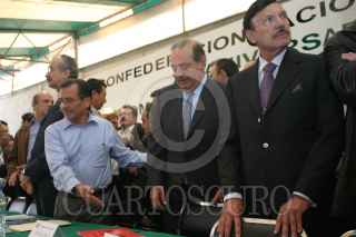 MEXICO, D.F. 06ENERO2005.- Heladio Ramírez, líder de la Confederación Nacional Campesina y los empresarios, Carlos Slim y Roberto Gonzalez, durante la Ceremonia del XC Aniversario de la Promulgación de la Ley Agraria. FOTO: Eunice Adorno/CUARTOSCURO.COM