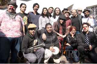 MÉXICO, D.F., 19ENERO2012.- Fernando Campos, investigador especialista en música gitana, Andrea Pérez del grupo circense perfomance, Cirko de Mente, Carlos Pichardo especialista en música gitana, Naïma Berkane representante del violinista rumano Anghel Gheorghe "Caliu" de la banda Taraf de Haïdoukus y el acordeonista macedonio, Vinko Stefanov de la banda Kocani Orkestar, Mary Farquharson de Discos Corason y Cristina King directora del Plaza Condesa dieron conferencia de prensa para detallar el 1er Balkanfest 2012 que se presentará el Sábado 21 en el Plaza Condesa, el festival arranca a la 21 hrs. FOTO: FRANCISCO RODRÍGUEZ/CUARTOSCURO.COM