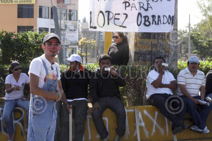 OAXACA, OAXACA, 19ENERO2012.- 250 Taxistas pertenecientes a diversos sitios de Juchitán de Zaragoza, en el Istmo de Tehuantepec realizaron un mega bloqueo en dos de los principales cruceros de la ciudad de Oaxaca, quienes exigen el retiro de mototaxis en dicha zona, la entrega de concesiones y la aplicación de operativos para detener a quienes ofrecen el servicio de taxis sin contar con los permisos correspondientes. FOTO: ARTURO PEREZ ALFONSO/CUARTOSCURO.COM