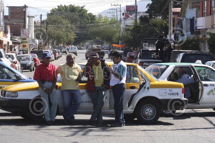 OAXACA, OAXACA, 19ENERO2012.- 250 Taxistas pertenecientes a diversos sitios de Juchitán de Zaragoza, en el Istmo de Tehuantepec realizaron un mega bloqueo en dos de los principales cruceros de la ciudad de Oaxaca, quienes exigen el retiro de mototaxis en dicha zona, la entrega de concesiones y la aplicación de operativos para detener a quienes ofrecen el servicio de taxis sin contar con los permisos correspondientes. FOTO: ARTURO PEREZ ALFONSO/CUARTOSCURO.COM