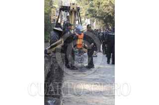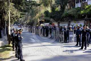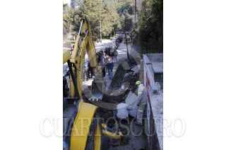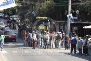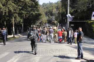 MÉXICO, D.F., 19ENERO2012.- Pobladores de San Lorenzo Acopilco, se oponen a que sea sustraído el vital liquido de los manantiales de la zona, por este motivo se realizan obras en el lugar para transportar el liquido que abastecerá la zona de Santa Fe en la Delegación Álvaro Obregón y Cuajimalpa, trabajadores han sido apoyados por granaderos para evitar un enfrentamiento. FOTO: LUIS CARBAYO/CUARTOSCURO.COM