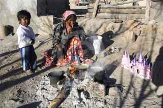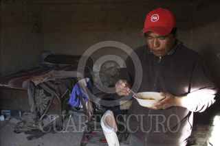 HUISARORARE, CHIHUAHUA, 19ENERO2012.- La señora Lola Serafina González se levanta muy temprano para hacerle de comer a sus tres hijos y esposo, ella les esta preparando menudo para desayunar. Juan Rodríguez comento de que la cosecha se perdió totalmente ahora están buscando como les va a ir este año ya que esperan que llueva para que se logre su cosecha de maíz y frijol. Ellos viven en el poblado de Huisarorare y por falta de agua también les esta afectado a los caballos y vacas donde están muriendo de hambre y sed ya que no hay alimento para ellos. FOTO: NACHO RUIZ/CUARTOSCURO.COM