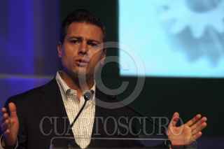 GUADALAJARA, JALISCO, 21ENERO2012.- El precandidato a la Presidencia de La República por el PRI, Enrique Peña Nieto asistió esta mañana la Reunión Anual de Industriales 2012 en esta ciudad y en donde planteo parte de sus propuestas y proyectos de gobierno en caso de ser electo, el presidencial todo el tiempo estuvo acompañado de Jorge Aristóteles Sandoval, aspirante a la Gobernatura de Jalisco, así como de Salomon Presburger Slovik (CONCAMIN) y el coordinador del Consejo de Cámaras Industriales en esta entidad, Manuel Herrera Vega. FOTO: FERNANDO CARRANZA GARCIA/CUARTOSCURO.COM