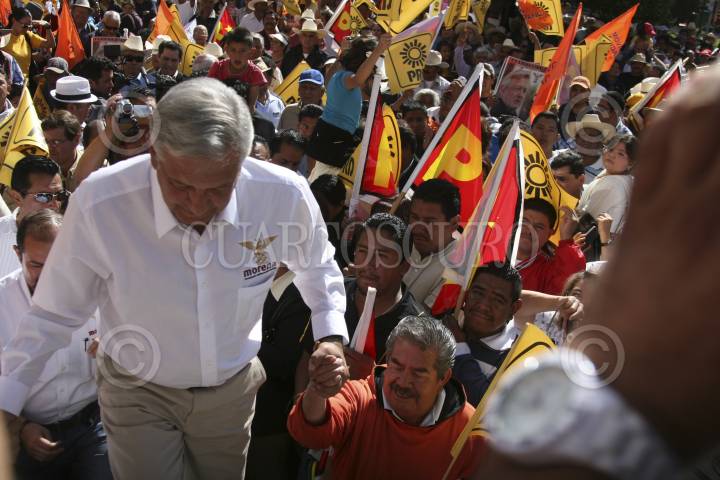 DOLORES, HIDALGO, GUANAJUATO, 21ENERO2012.- Andrés Manuel López Obrador, precandidato del PRD, PT y Movimiento Ciudadano a la presidencia de la República, encabezó un mitin en la explanada municipal. Alfonso Sánchez Anaya, senador, estuvo presente en el mítin. FOTO: IVÁN STEPHENS/CUARTOSCURO.COM