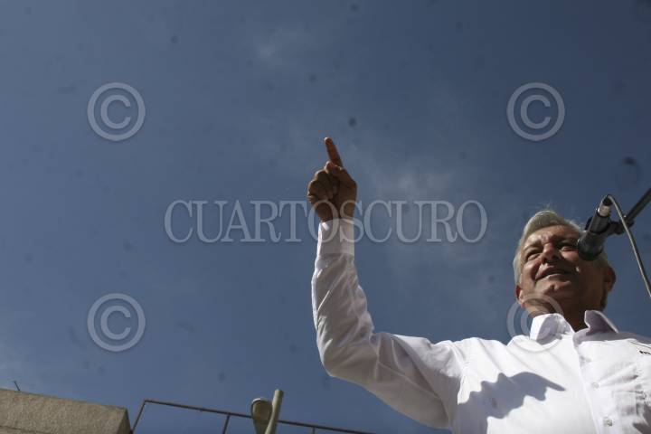 DOLORES, HIDALGO, GUANAJUATO, 21ENERO2012.- Andrés Manuel López Obrador, precandidato del PRD, PT y Movimiento Ciudadano a la presidencia de la República, encabezó un mitin en la explanada municipal. Alfonso Sánchez Anaya, senador, estuvo presente en el mítin. FOTO: IVÁN STEPHENS/CUARTOSCURO.COM