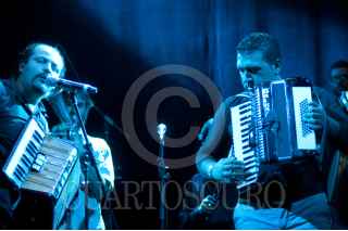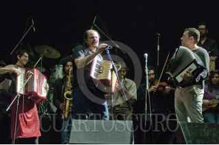 MÉXICO, D.F., 21ENERO2012.- Los acordeonistas, Marina de Ita de Polka Madre el macedonio, Vinko Stefanov de la banda Kocani Orkestar se presenta el día de hoy en el festival Balkanfest 2012 en el Plaza Condesa, el festival arranca a la 21 hrs y contará con bandas como Sonora Balkanera y Triciclo Circus Band. FOTO: FRANCISCO RODRÍGUEZ/CUARTOSCURO.COM