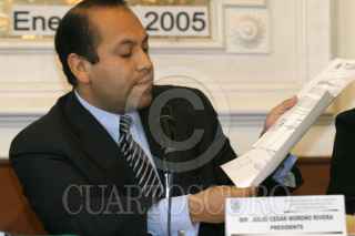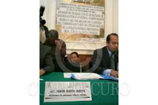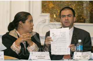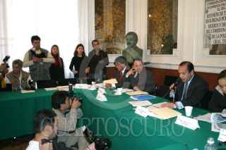 MEXICO, D.F. 07ENERO2005.- Integrantes de la comisión especial que investiga los hechos ocurridos en el pueblo de San Juan Ixtayopan, durante la sesión de trabajo a la que estuvo invitado Ramón Martín Huerta, titular de la Secretaria de Seguridad Pública Federal. FOTO: Nelly Salas/CUARTOSCURO.COM