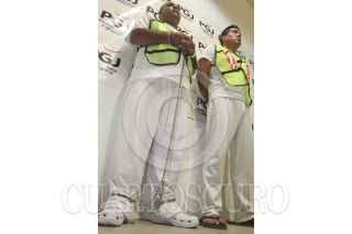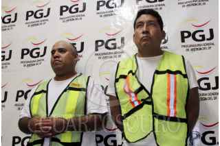 MÉXICO, D.F. 23ENERO2012.- Emilio Hernández Ruiz y a Eleazar de la Rosa Anzurez, fueron presentados ante los medios de comunicación por su presunta participación en el asesinato de dos personas mismas que fueron encontradas en el interior de una camioneta en el centro comercial de Santa Fé, se cree que los detenidos pertenescan a la organización criminal denominada La Mano con Ojos. FOTO: SAÚL LÓPEZ/CUARTOSCURO.COM