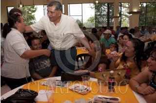VILLAHERMOSA, TABASCO, 24ENERO2012.- Adán Augusto López Hernández, diputado federal con licencia se reunió en una comida con militantes del PRI y que ahora se adhieren al PRD para apoyarlo como su precandidato a la alcaldía de Centro. Los ex priistas manifestaron concluyeron que ahora esta corriente de izquierda política representa una mejor opción para gobernar la capital del Estado; ya que en el tricolor no existe un buen candidato. FOTO: MARCO POLO GUZMÁN HERNÁNDEZ/CUARTOSCURO.COM
