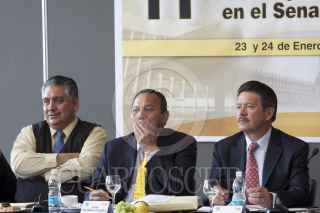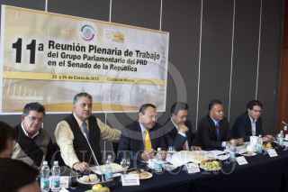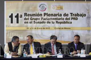 MÉXICO, D.F. 24ENERO2012.- Los legisladores del PRD Guadalupe Acosta Naranjo, Jesús Zambrano, y Carlos Navarrete, durante la 11a Reunión Plenaria de Trabajo del Grupo Parlamentario del PRD en el Senado de la República. FOTO: MOISÉS PABLO/CUARTOSCURO.COM