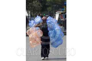 MÉXICO, D.F. 24ENERO2012.- Vendedor de agua camina con sus garrafones sobre la avenida Juárez. El agua envasada en garrafón es el 70% del mercado y crece a tasas de 7%, en tanto que la vendida en botella representa 30% del mercado total pero crece a tasas de 11%, según la Asociación Nacional de Productores y Distribuidores de Agua Purificada (ANPDAPAC),. FOTO: MOISÉS PABLO/CUARTOSCURO.COM