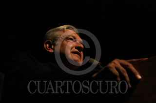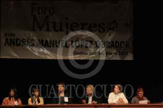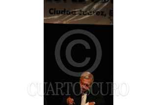 CIUDAD JUÁREZ, CHIHUAHUA, 24ENERO2012.- Andrés Manuel López Obrador, precandidato de los partidos políticos PRD, PT y Movimiento Ciudadano, prometió crear una Comisión de la Verdad que sería integrada por abogadas y defensoras de derechos civiles, para hacer justicia a las mujeres asesinadas en Ciudad Juárez y en todo el país en el Foro de Mujeres organizado por el Comité Municipal del PRD. FOTO: NACHO RUIZ/CUARTOSCURO.COM