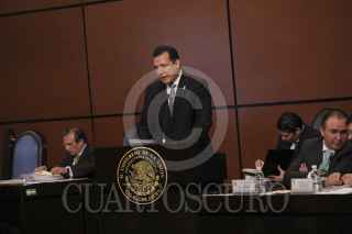 MÉXICO, D.F., 25ENERO2012.- Raúl Plascencia Villanueva, Presidente de la Comisión Nacional de Derechos Humanos (CNDH) acudió a la sesión de la Comisión Permanente donde realizó la entrega del informe de labores 2011 a Guadalupe Acosta Naranjo Presidente de la Mesa Directiva de la Cámara de Diputados. FOTO: GUILLERMO PEREA/CUARTOSCURO.COM