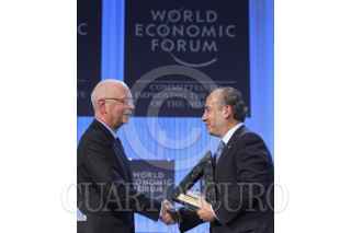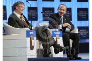 DAVOS, SUIZA, 26ENERO2012.- Bill Gates, fundador de Microsoft junto a Felipe Calderon, Presidente de México durante la la participación que tuvieron en el Foro Economico de Davos. FOTO: ADOLFO JASSO/CUARTOSCURO.COM