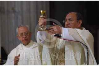 MEXICO, D.F. 09ENERO2005.- Guillermo Millán Ortiz, arzobispo, oficio la misa dominical en la catedral, en lugar del arzobispo promado, Norberto Rivera Carrera. FOTO:CUARTOSCURO.COM