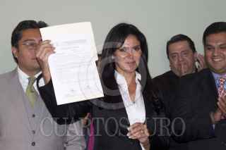 MÉXICO, D.F., 27ENERO2012.- Leticia Varela se registró en las oficinas de la Comisión Nacional Electoral del PRD como precandidata a Jefa Delegacional de la Bénito Juárez. FOTO: MOISÉS PABLO/CUARTOSCURO.COM