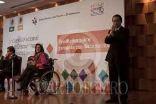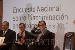 MÉXICO, D.F., 31ENERO2012.- Ricardo Antonio Bucio Mujica, presidente del Conapred, y la diputada Yolanda de la Torre Valdez, presidenta de Atención de Grupos Vulnerables de la Cámara de Diputados, durante la presentación de la Encuesta Nacional sobre Discriminación en México 2010. FOTO: MOISÉS PABLO/CUARTOSCURO.COM