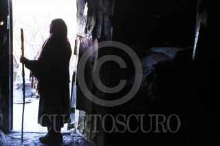 CREEL, CHIHUAHUA, 31ENERO2012.- Doña Petra es una indígena raramuri de 70 años quien vive a las afueras de Creel, su casa es una cueva abajo de las piedras que se observan en la sierra; ella se dedica a la agricultura pero menciona que obtenía dinero de la gente que visitaban su hogar, sin embargo debido a la violencia que se vive en la República Mexicana, la afluencia de turismo a decaído considerablemente. FOTO: RASHIDE FRIAS/CUARTOSCURO.COM