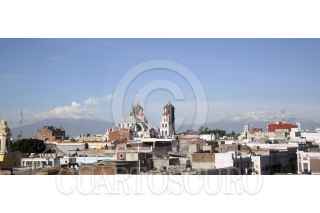 PUEBLA, PUEBLA, 31ENERO2012.- Vista del volcán Popocatépetl, que amaneció nevado y con una pequeña fumarola de vapor de agua; el semáforo de alerta volcánica permanece en amarillo fase dos. FOTO: HILDA RIOS/CUARTOSCURO.COM
