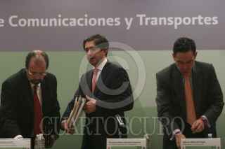 MÉXICO, D. F., 31ENERO2012.- Gerardo Sánchez Henkel, titular de la Unidad de Asuntos Jurídicos de la Secretaría de Comunicaciones y Transportes; Dionisio Pérez-Jácome Friscione, Secretario de Comunicaciones y Transportes; y Héctor Olavarría Tapia, Subsecretario de Comunicaciones, anunciaron las acciones que emprenderá la Secretaría de Comunicaciones y Transportes (SCT) para el fortalecimiento de la banda ancha y las tecnologías de la información y comunicación. FOTO: IVÁN STEPHENS/CUARTOSCURO.COM