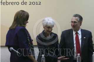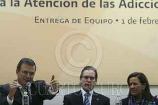 MÉXICO, D.F., 01FEBRERO2012.- Wendy Sherman, subsecretaria de asuntos políticos del Departamento de Estado de los Estados Unidos; Salomón Chertorivski Woldenberg, Secretario de Salud; y Margarita Zavala, presidenta del DIF; ; acudieron a la entrega del equipo que conforma la "Red Nacional de Transferencia de Tecnología para la Atención de las Adicciones" en el Centro Nueva Vida México-España. FOTO: IVÁN STEPHENS/CUARTOSCURO.COM