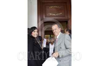 MÉXICO, D.F., 01FEBRERO2012.- Alejandra Barrales Magdaleno, presidenta de la Comisión de Gobierno de la ALDF, y Adolfo Orive Bellinger, diputado del PT, ofrecieron una conferencia de prensa en la cual anunciaron un programa de becas para jóvenes estudiantes. FOTO: MOISÉS PABLO/CUARTOSCURO.COM