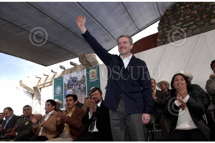 Vetagrande, Zacatecas, 10ENERO2005.- Santiago Creel, secretario de Gobernación y Amalia García, gobernadora de Zacatecas, durante la ceremonia de evaluación de acciones y apoyos realizados durante la temporada invernal 2004. FOTO: Javier Tapia/CUARTOSCURO.COM