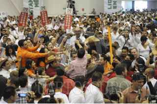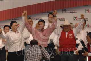CIUDAD VICTORIA, TAMAULIPAS, 03FEBRERO2012.- Enrique Peña Nieto, precandidato del PRI a la Presidencia de la República, durante su visita a esta ciudad, estuvo presente Manuel Cavazos Lerma, precandidato a senador y quien tiene una averiguación de la PGR que lo involucra con también los ex gobernadores Tomás Yarrington y Eugenio Hernández Flores. El aspirante presidencial, respaldó ayer la postulación al senado del ex gobernador, Cavazos Lerma, manifestando a los priistas a no caer en provocaciones, además exigió a las autoridades a no distorsionar el ambiente y también pidió garantías para hacer una elección libre y democrática. FOTO: ESPECIAL/CUARTOSCURO.COM