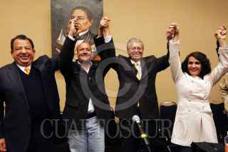 GUADALAJARA, JALISCO, 03FEBRERO2012.-Enrique Alfaro Ramírez ganó la encuesta contra Raúl Vargas López y de acuerdo a las dirigencias nacionales del PRD, PT y Movimiento Ciudadano, será el representante de las izquierdas, en lo que se llamará Movimiento Progresista de Jalisco en la candidatura a gobernador del estado, le acompañan, Luis Walton, Manuel Camacho Solis y Dolores Padierna. FOTO: CORTESIA/CUARTOSCURO.COM