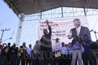 TEOLOYUCAN, ESTADO DE MÉXICO, 03FEBRERO2012.- Andrés Manuel López Obrador, precandidato de la izquierda a la Presidencia de la República, encabezó un mitin político en este municipio, como parte de su precampaña. FOTO: ISAAC ESQUIVEL/CUARTOSCURO.COM
