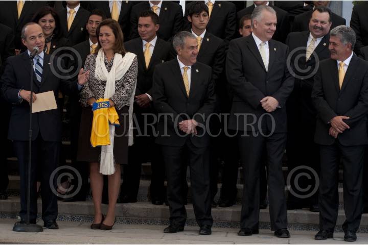 MÉXICO, D.F., 03FEBRERO2012.- El Director Técnico del equipo de futbol, Tigres de la Universidad Autónoma de Nuevo León, Ricardo "El Tuca" Ferreti, acudió con el equipo y directivos a la residencia oficial de Los Pinos, el día de hoy, para ser felicitados por el Presidente de la República, Felipe Calderón por el título obtenido en el toreno Clausura 2011. FOTO: FRANCISCO RODRÍGUEZ/CUARTOSCURO.COM