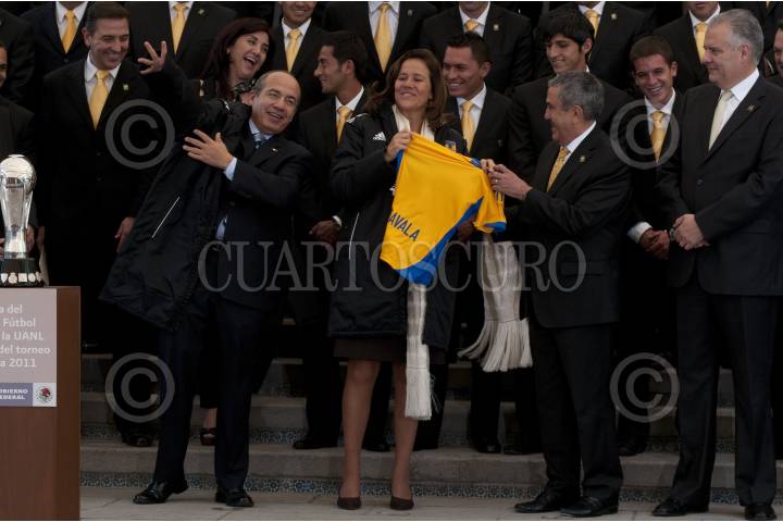MÉXICO, D.F., 03FEBRERO2012.- El Director Técnico del equipo de futbol, Tigres de la Universidad Autónoma de Nuevo León, Ricardo "El Tuca" Ferreti, acudió con el equipo y directivos a la residencia oficial de Los Pinos, el día de hoy, para ser felicitados por el Presidente de la República, Felipe Calderón por el título obtenido en el toreno Clausura 2011. FOTO: FRANCISCO RODRÍGUEZ/CUARTOSCURO.COM