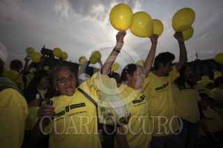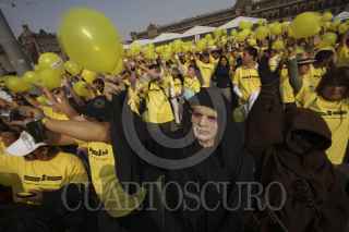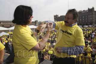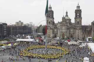 MÉXICO, D.F., 04FEBRERO2012.- La secretaría de Salud del Gobierno del D.F., la organización Live Strong, y otras organizaciones civiles conmemoraron el Día Mundial de la Lucha contra el Cancer. También realizaron el cinturón amarillo más grande del mundo, con el que se rompió el Record Guiness. FOTO: JUAN PABLO ZAMORA/CUARTOSCURO.COM