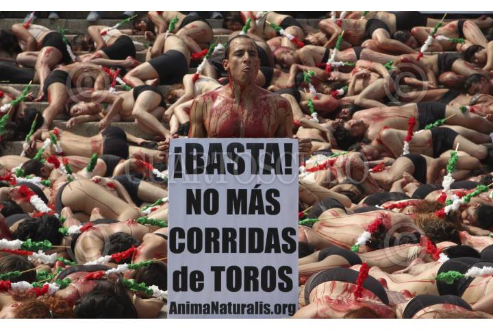 MÉXICO, D.F., 05FEBRERO2012.- Integrantes de la Organización AnimaNaturalis, se manifestaron en la glorieta del Ángel de la Independencia en contra de las corridas de toros en el país. FOTO: ENRIQUE ORDÓÑEZ/CUARTOSCURO.COM