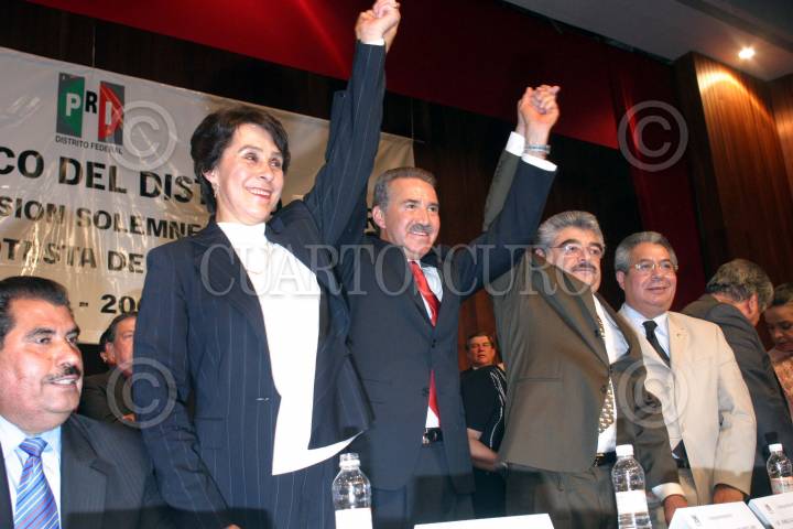 Mèxico, D.F., 11ENERO2005.- Roberto Madrazo, lìder nacional del PRI y Florentino Castro López, ex-dirigente del PRIDF, durante la toma de protesta de la dirigencia del PRI DF, en la sede nacional del revolucionario institucional. FOTO: Moisés Pablo/CUARTOSCURO.COM