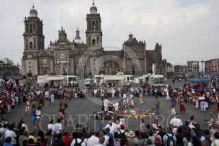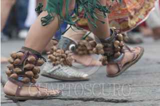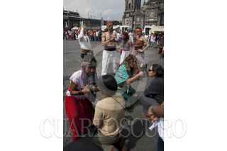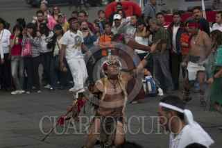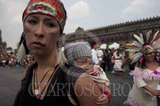MÉXICO, D.F., 06FEBRERO2012.- Decenas de danzantes y organizaciones civiles, acudieron a la plancha de Zócalo para realizar un acto espejo en apoyo al poblado de Wirikuta ya que la empresa canadiense canadiense Firts Majestic Silver Corp, proyecta la explotación de las áreas que incluyen a ese Pueblo Mágico, denominado así por el ejecutivo y desde 2008. FOTO: GUILLERMO PEREA/CUARTOSCURO.COM