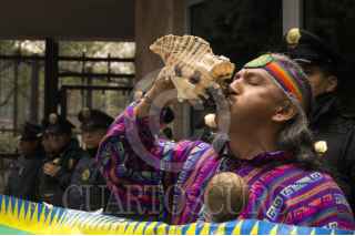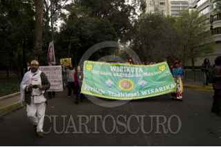 MÉXICO, D.F., 06FEBRERO2012.- Decenas de danzantes y organizaciones civiles, acudieron a la embajada de Canadá para realizar un acto de protesta en apoyo a Wirikuta, centro ceremonial del pueblo Huichol, ya que la empresa canadiense canadiense Firts Majestic Silver Corp, proyecta la explotación de las áreas que incluyen a ese Pueblo Mágico, denominado así por el ejecutivo y desde 2008. FOTO: PEDRO ANZA/CUARTOSCURO.COM