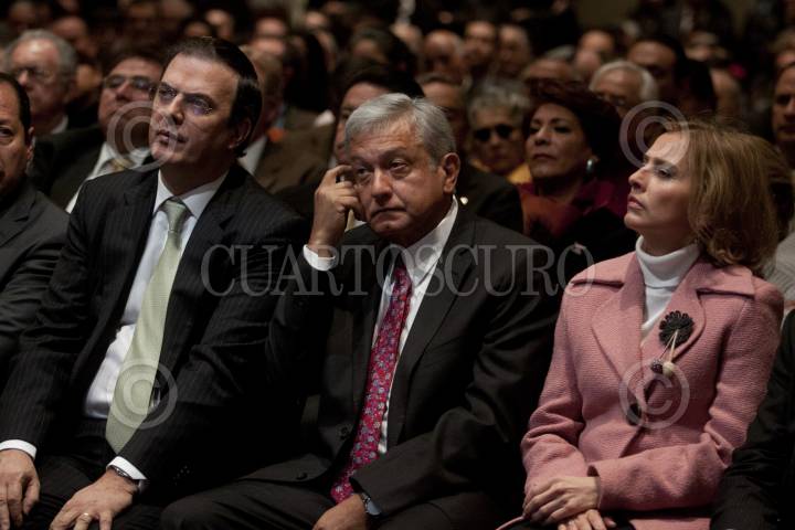 MÉXICO, D.F., 07FEBRERO2012.- Andrés Manuel López Obrador precandidato a la Presidencia de la República por el PRD, PT y Movimiento Ciudadano, durante su discurso en el evento en donde los integrantes de las izquierdas fueron testigos del pacto de unidad entre el AMLO y el Ingeniero Cuauhtémoc Cárdenas Solórzano. FOTO: MOISÉS PABLO/CUARTOSCURO.COM