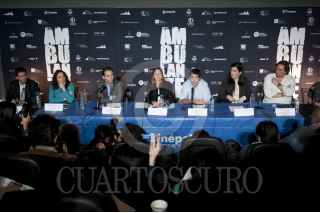 MÉXICO, 08FEBRERO2012.- Ricardo Giraldo, (tercero de derecha a izquierda) Director de Ambulante Gira, detalló las fechas que tendrá "Ambulante 2012 Gira de Documentales" en la República Mexicana, en su séptima edición, la cual presenta 12 secciones en 11 estados, 22 municipios, 110 sedes además del Distrito Federal. Tambien dijo que la asociación con Cinepolis, CANANA Films y el Festival Internacional de Cine en Morelia, le dará mayor dinamismo con secciones nuevas como "Ambulante Reflexiones" que es un foro donde se expondrá temas de interes para la sociedad, como la educación y el medio ambiente. FOTO: FRANCISCO RODRÍGUEZ/CUARTOSCURO.COM