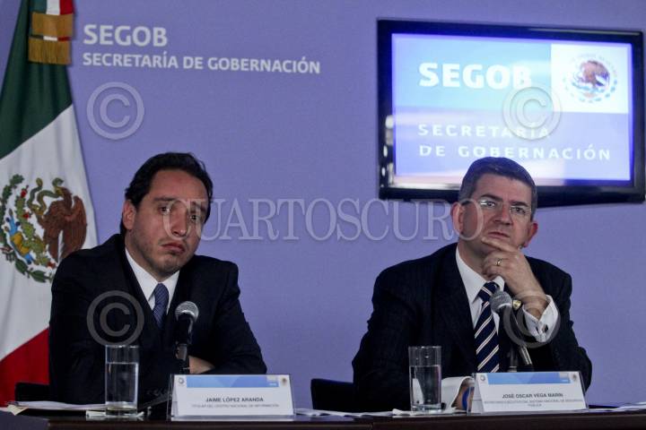 MÉXICO, D.F., 08FEBRERO2012.- José Oscar Vega Marín, Secretario del Sistema Nacional de Seguridad Publica durante la conferencia que mantuvieron para dar a conocer informacion respecto a los indices delictivos del país. FOTO: ENRIQUE ORDÓÑEZ/CUARTOSCURO.COM