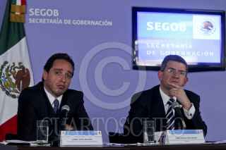 MÉXICO, D.F., 08FEBRERO2012.- José Oscar Vega Marín, Secretario del Sistema Nacional de Seguridad Publica durante la conferencia que mantuvieron para dar a conocer informacion respecto a los indices delictivos del país. FOTO: ENRIQUE ORDÓÑEZ/CUARTOSCURO.COM