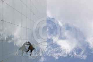 MÉXICO, 08FEBRERO2012.- Limpia vidrios maniobra en las alturas en un edificio de avenida Reforma. FOTO: MOISÉS PABLO/CUARTOSCURO.COM