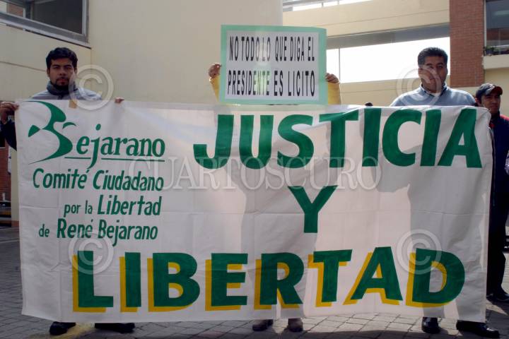 MEXICO, D.F. 18ENERO2005.- Integrantes del comité ciudadano por la libertad de René Bejarano, manifestaron su apoyo al ex asambleísta a las puertas del juzgado 32, donde se encontraba Carlos Imaz, ex delegado de Tlalpan declarando en calidad de testigo del caso Ahumada. FOTO: Sandra Perdomo/CUARTOSCURO.COM
