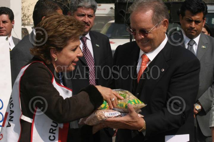 MEXICO, D.F. 18ENERO2005.- Marta Sahagún, primera dama de México encabezó la recepción de ayuda humanitaria de la sociedad civil para las víctimas del maremoto en el sureste asiático, en las instalaciones de la Cruz Roja Mexicana. FOTO: Moisés Pablo/CUARTOSCURO.COM