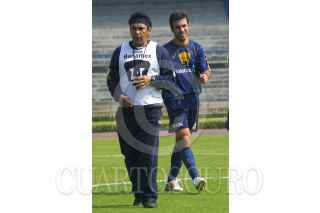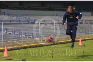 MEXICO, D.F. 18ENERO2005.- Hugo Sánchez, director técnico de Pumas, y Joaquín del Olmo, estuvieron en el entrenamieto del equipo este día. FOTO: Anastasia Elizarrarás/CUARTOSCURO.COM